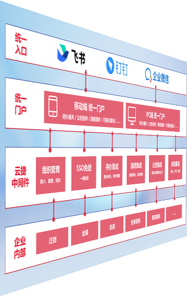 对协作平台提供支持服务,,支持企业应用与协作平台对接,,,包含组织同步、、消息集成、、、、待办集成等。。。。支持目前主流的协作平台:钉钉、、企微和飞书。。。